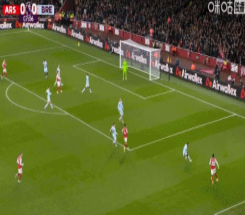 第11分钟,本-怀特送出传中,梅里诺头球破门!阿森纳1-0布伦特福德