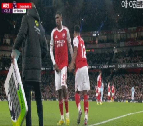 第61分钟,阿森纳换两人,萨卡和埃泽联袂登场